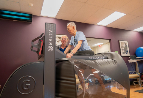 - The AlterG® Anti-Gravity Treadmill™: This game-changing treadmill uses air pressure to "unweight" a patient by up to 80% of their body weight. This allows individuals recovering from orthopedic surgery or spinal cord injury to practice walking with a normal gait, without pain, much sooner in their recovery.